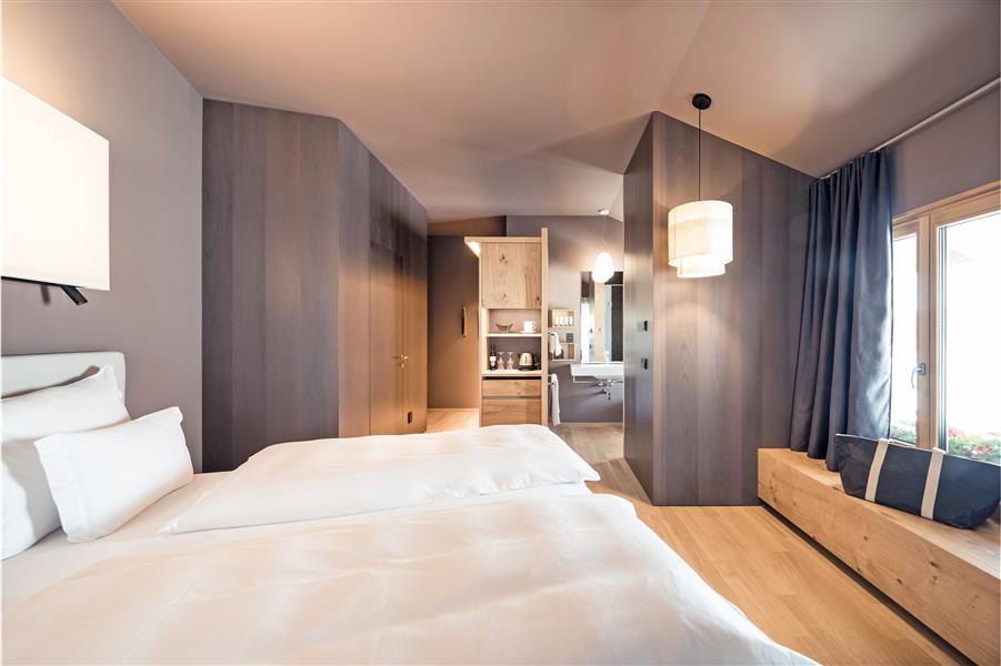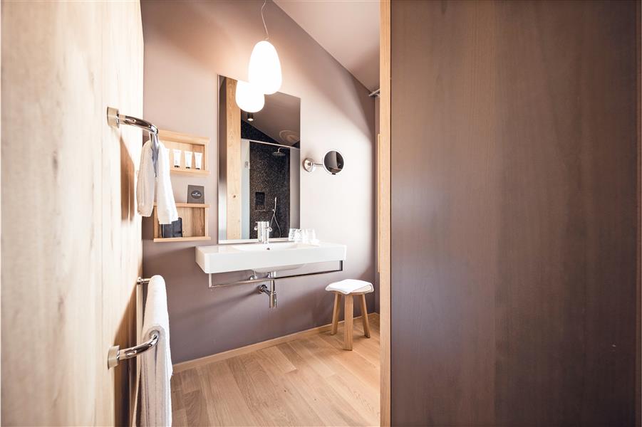 The Comfort and Suite rooms are for everyone. All rooms have a high-quality oak floor and a small balcony or terrace; in addition, inside you will find comfortable box-spring beds, a sitting area with sofa or two armchairs, coffee table or reading table, organic air conditioning, flat-screen satellite TV, WiFi, telephone, safe and minibar. The bathrooms are equipped with a wellness shower, hairdryer and WC. A wellness bag with bathrobe, bath and sauna towels is available. Single Mountain Classic, about 25 sqm. Mountain Comfort 2 pax, about 40 sqm. Mountain Comfort Superior 2/3 pax, approx. 35 sqm. Mountain Living 2/3 pax, about 42 sqm. Mountain Family 2/4 pax, about 58 sqm. Lampl Suite 2/4 pax, about 60 sqm. Schlern Suite 2 pax, approx. 39 sqm. Schlern Suite Deluxe 2 pax, approx. 43 sqm.