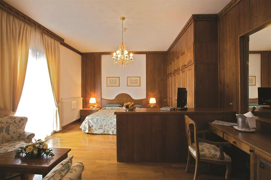 On 3 floors it has 55 rooms, all spacious and comfortable, furnished in classic mountain style, some with balconies. Central heating, bathroom with bathtub and shower, mini bar, safe, digital TV, telephone, hairdryer and bathroom set with slippers, bathrobe and toilet amenities, laundry service, room service, free Wi-Fi in common rooms and rooms: Classic (25 sqm), 2/3 beds. Comfort (25 sqm) 2/3 beds. Superior (30 sqm), 3/4 beds. Family room two Classic rooms, with a shared bathroom (3 to 4 people). Suite 35 sqm 3/4 beds.